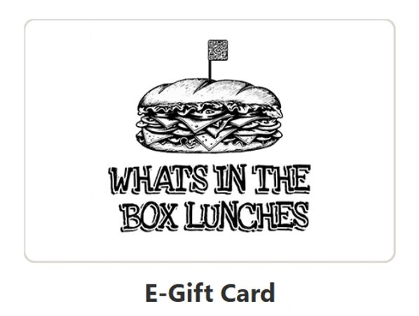 Give the gift of What's In The Box Lunches to your friends and family for their special occasion! Our gift cards are available in any denomination and are redeemable for any of the products on our website.